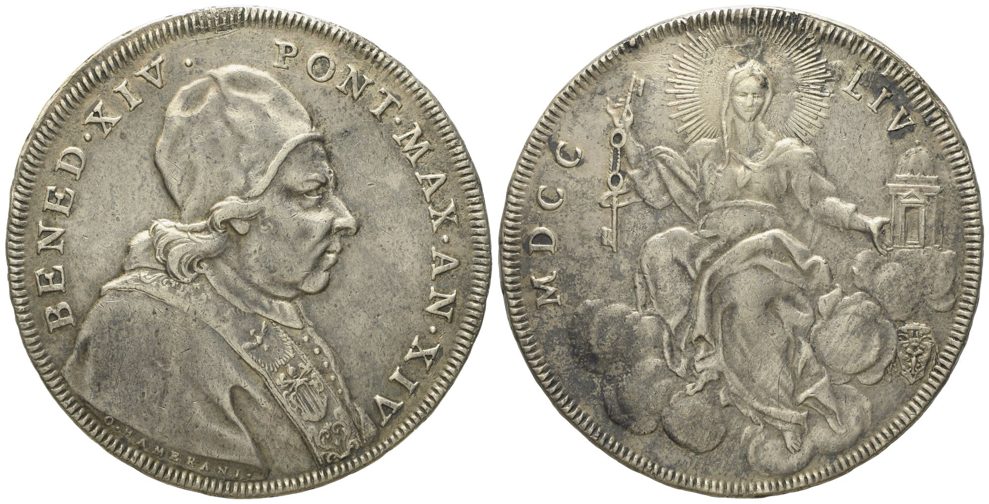 STATO PONTIFICIO. Roma. Benedetto XIV (1740 - 1758). Scudo romano 1754. Ag (26,35 g; 41,7 mm)