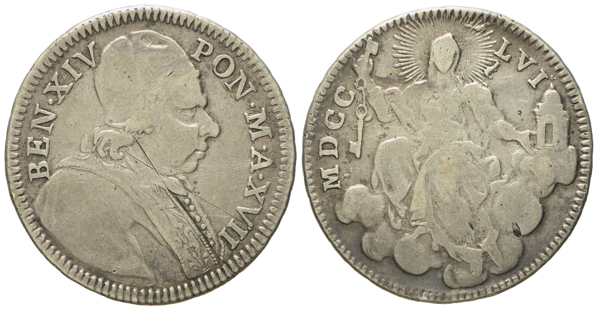 STATO PONTIFICIO. Roma. Benedetto XIV (1740 - 1758). Doppio giulio 1756, anno XVII. Ag (g 5,20; mm 26).