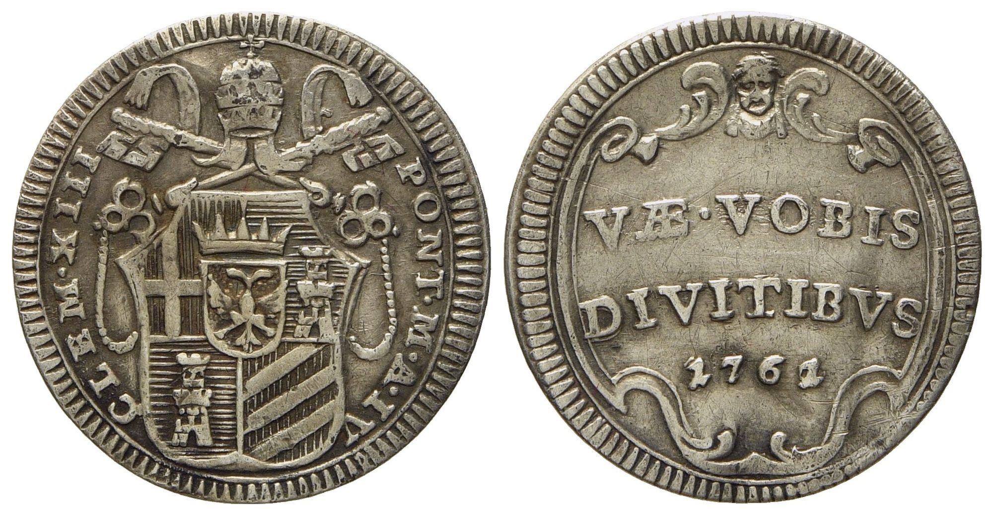 STATO PONTIFICIO. Roma. Clemente XIII (1758 - 1769). Mezzo grosso 1761, anno IV. Ag (g 0,62; mm 16,5).