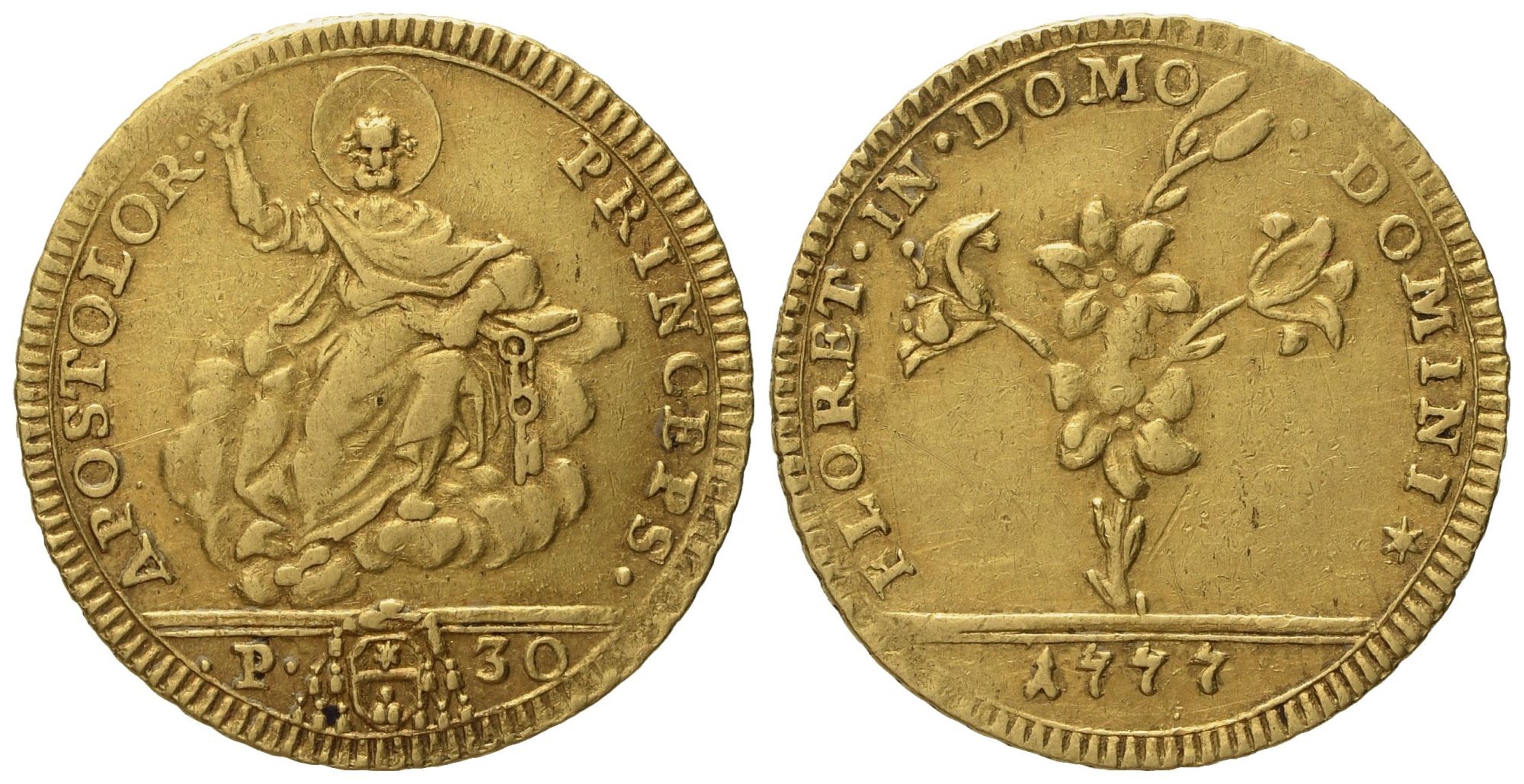 STATO PONTIFICIO. Roma. Pio VI (1775 - 1799). Doppia romana 1777. Au (5,53 g; 23 mm)