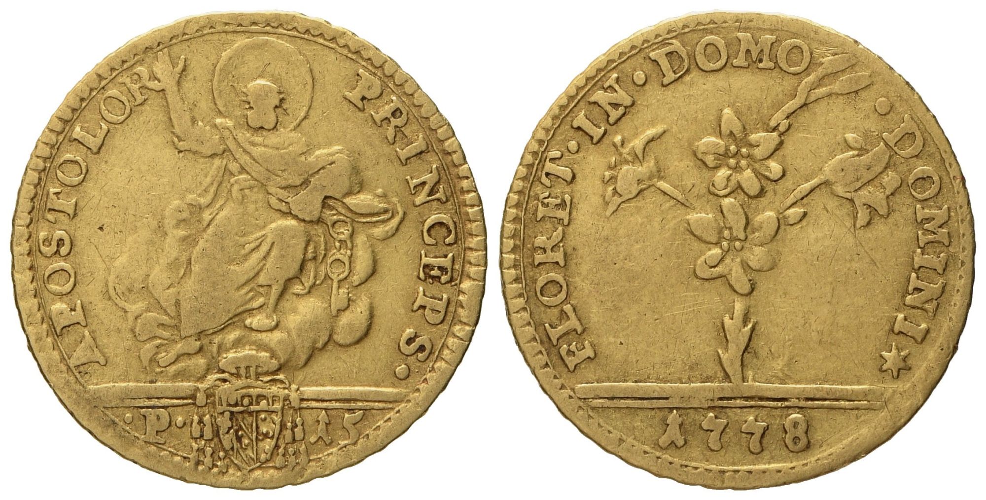 Lotto 500 | STATO PONTIFICIO. Roma. Pio VI (1775 - 1799). Mezza doppia romana 1778. Au (2,67 g; 20 mm)