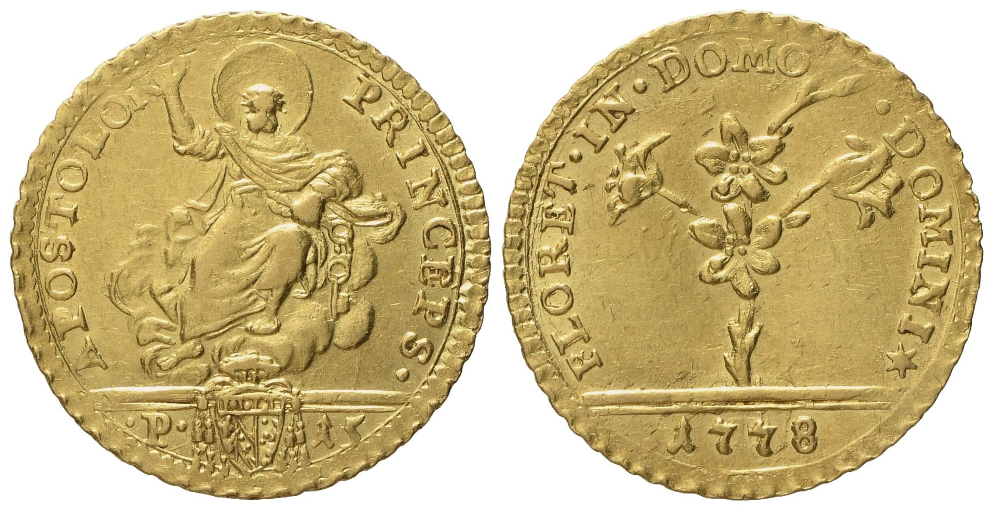 Lotto 501 | STATO PONTIFICIO. Roma. Pio VI (1775 - 1799). Mezza doppia romana 1778. Au (2,74 g; 20,3 mm)