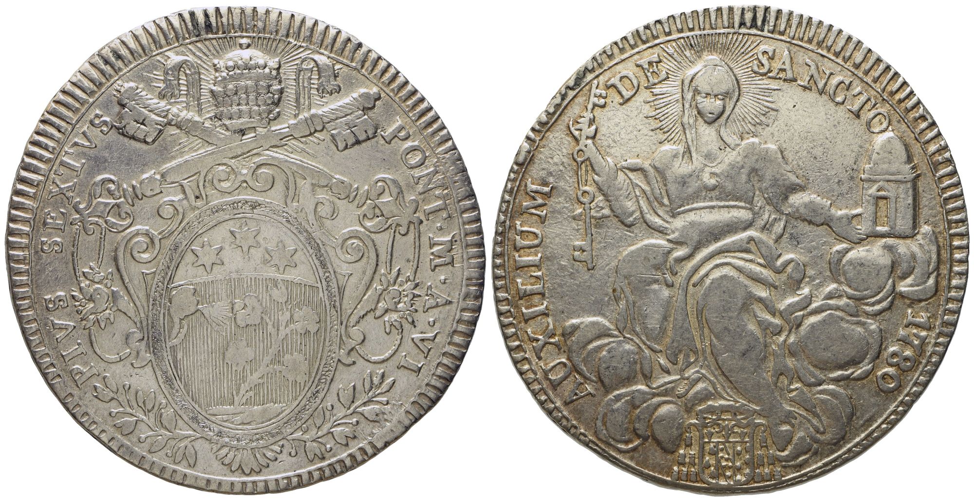 STATO PONTIFICIO. Roma. Pio VI (1775 - 1799). Scudo 1780. Ag (26,2 g; 41,5 mm)