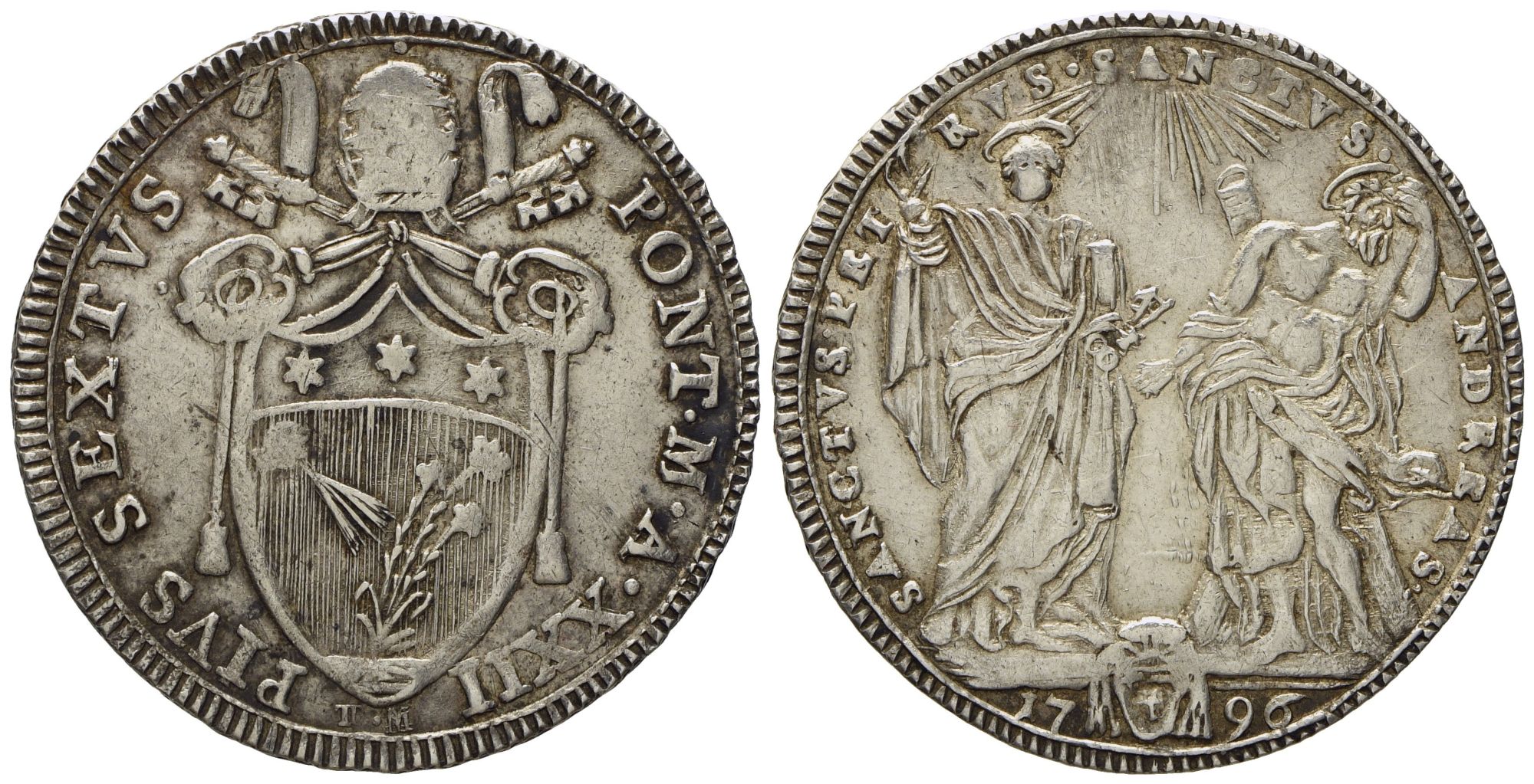 STATO PONTIFICIO. Roma. Pio VI (1775 - 1799). Testone 1796, anno XXII. Ag (g 7,87; mm 29,7).