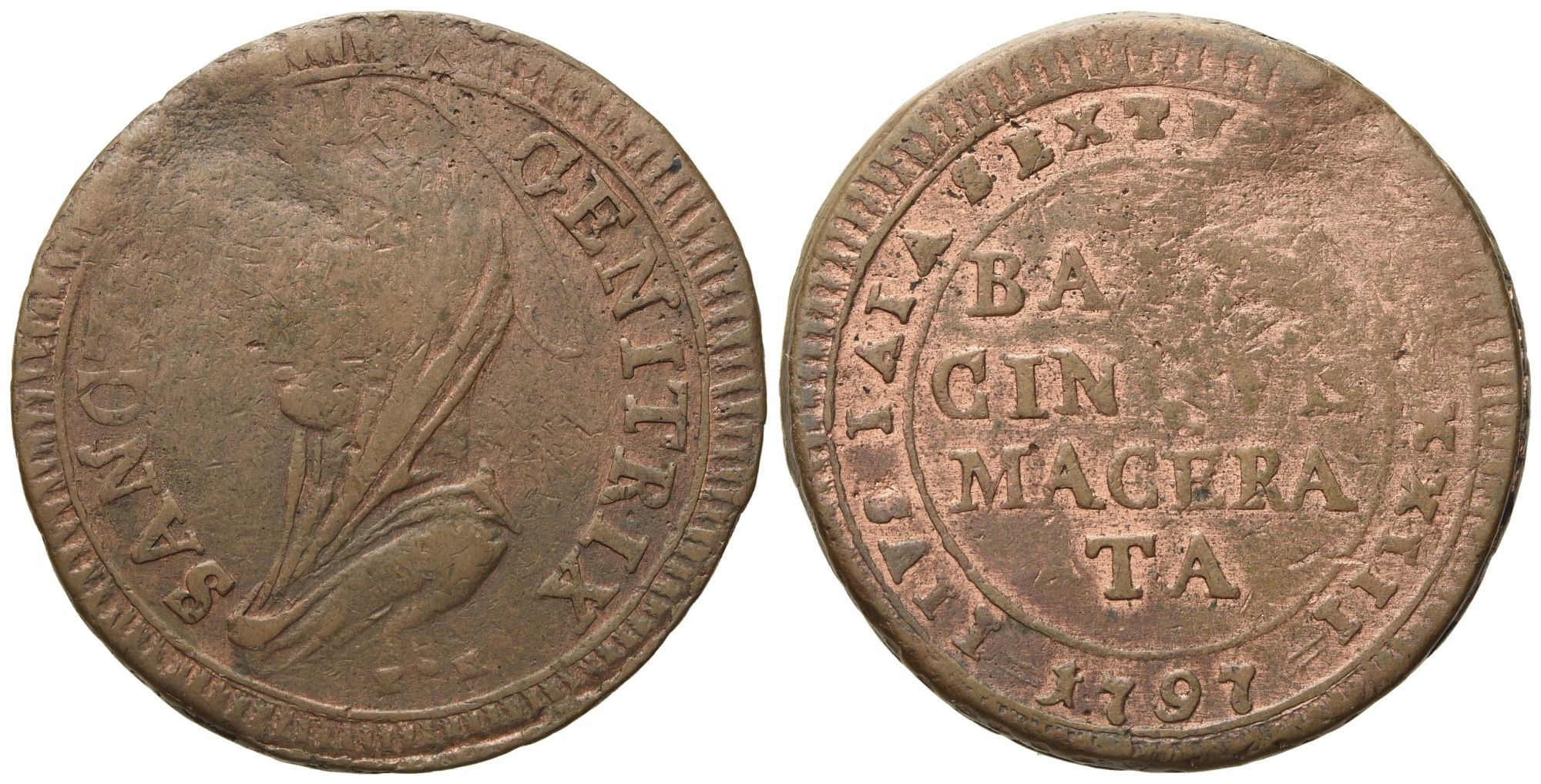 STATO PONTIFICIO. Macerata. Pio VI (1775 - 1799). 5 baiocchi 1797. Cu (15,21 g; 31,85 mm).