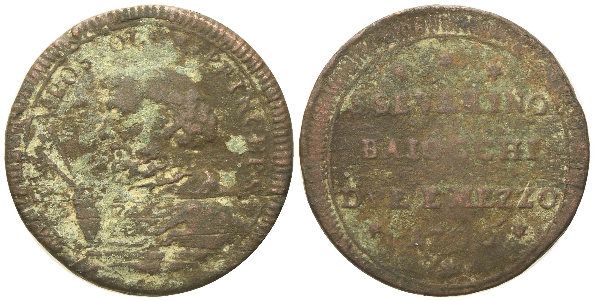 STATO PONTIFICIO. San Severino. Pio VI (1775 - 1799). 2 baiocchi e mezzo 1796. Cu (15,66 g; 29,37 mm).