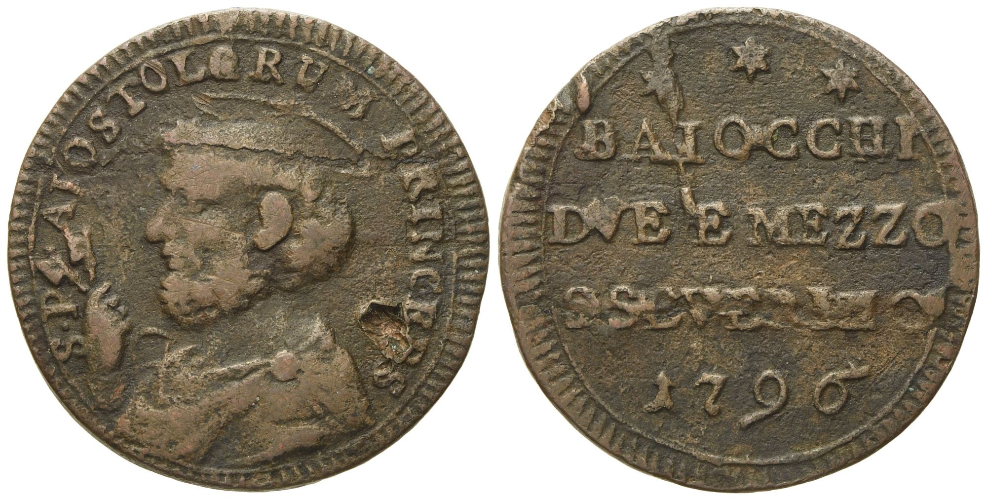 STATO PONTIFICIO. San Severino. Pio VI (1775 - 1799). 2 baiocchi e mezzo 1797. Cu (16,03 g; 29,29 mm).