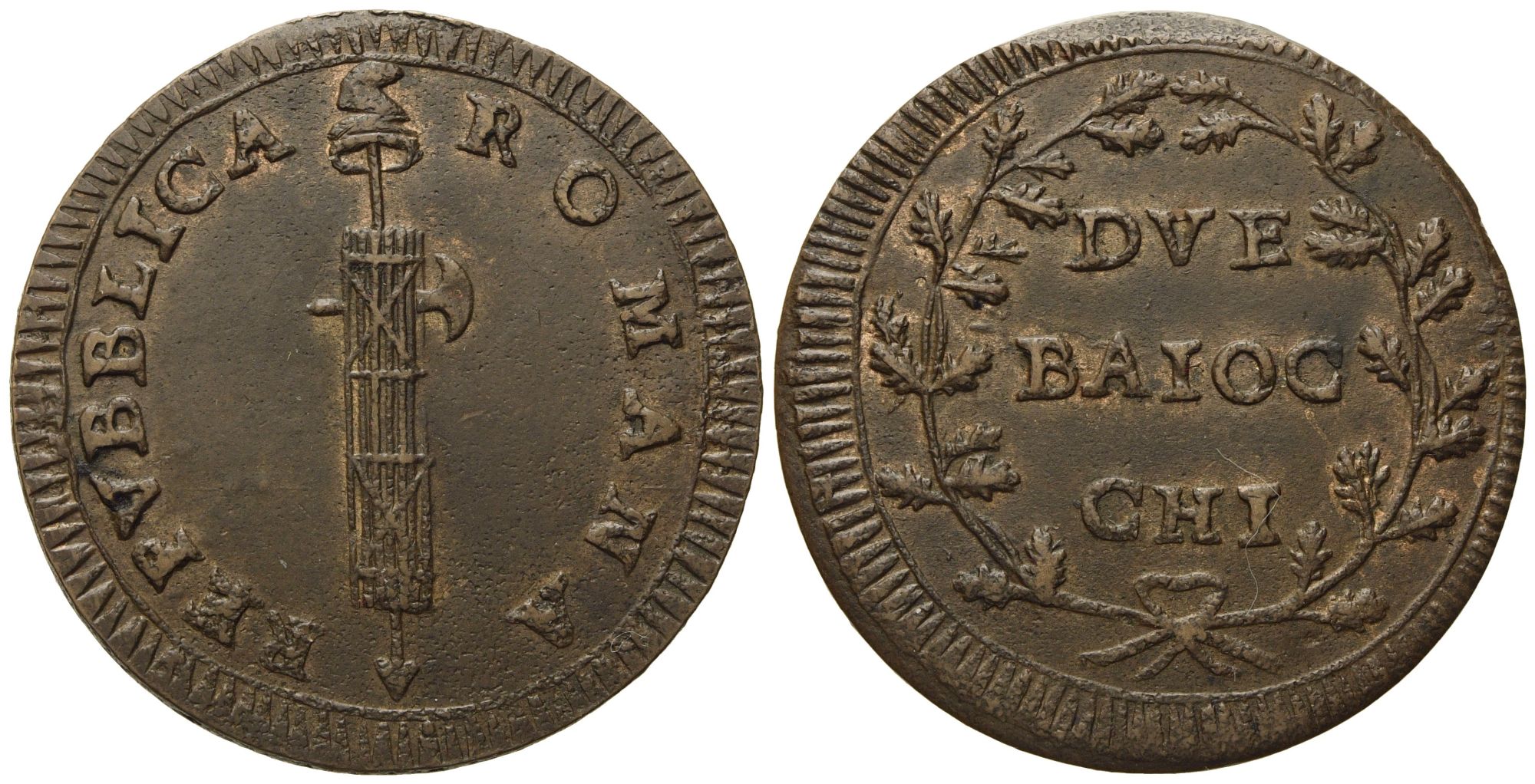 ROMA. Prima Repubblica Romana (1798-1799). 2 baiocchi senza data. Cu (g 18,34; mm 35).