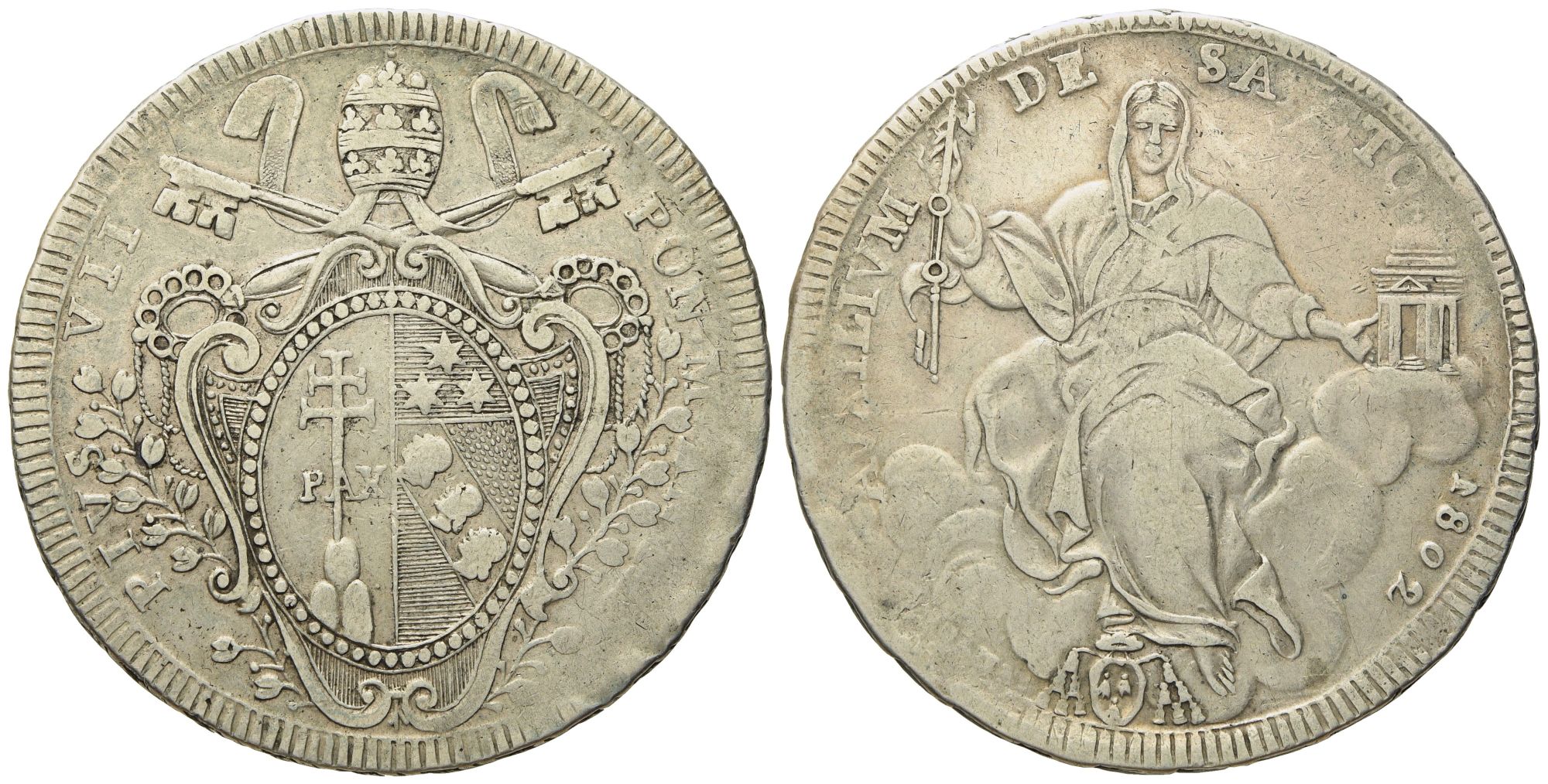 STATO PONTIFICIO. Roma. Pio VII (1800 - 1823). Scudo 1802. Ag (26,01 g; 41,25 mm).