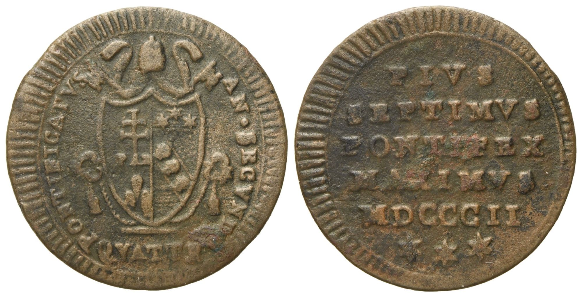 STATO PONTIFICIO. Roma. Pio VII (1800 - 1823). Pio VII (1800 - 1823). Quattrino 1802. Cu (g 2,49; mm 21,7).