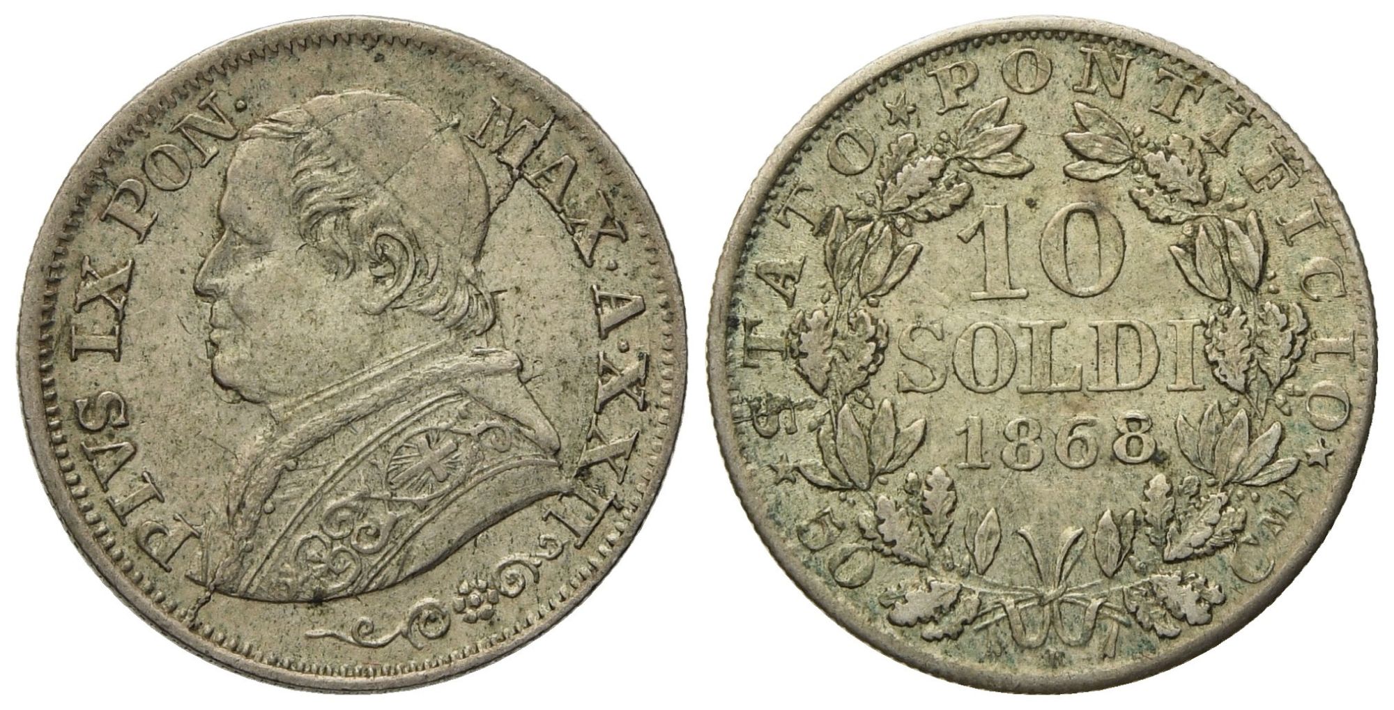 STATO PONTIFICIO. Roma. Pio IX (1846 - 1870). 10 soldi, 50 centesimi 1868, anno XXII. Ag (2,47 g; 18,55 mm).