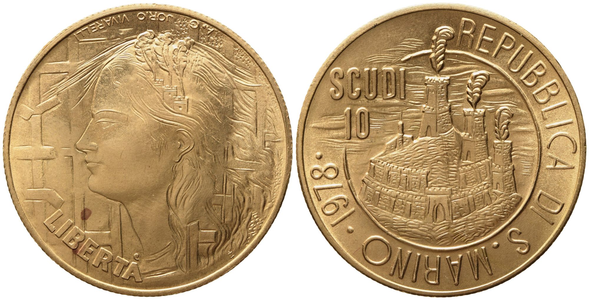 Lotto 600 | SAN MARINO. 10 scudi 1978. Au 917 (30,16 g; 33,93 mm). FDC
