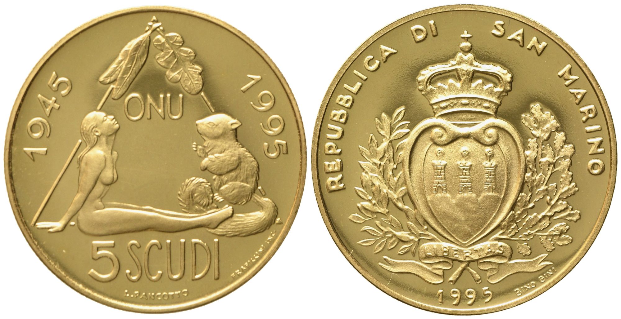 Lotto 603 | SAN MARINO. 5 scudi 1995. Au 916,66 (16,96 g)