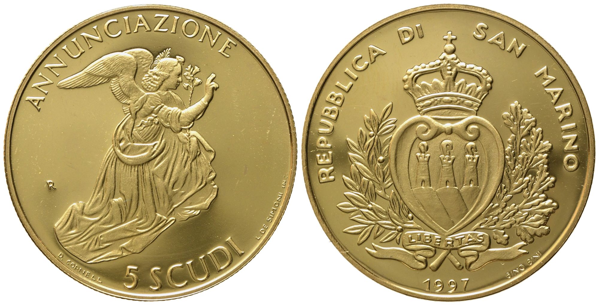 SAN MARINO. 5 scudi 1997. Au 916,66 (16,96 g)