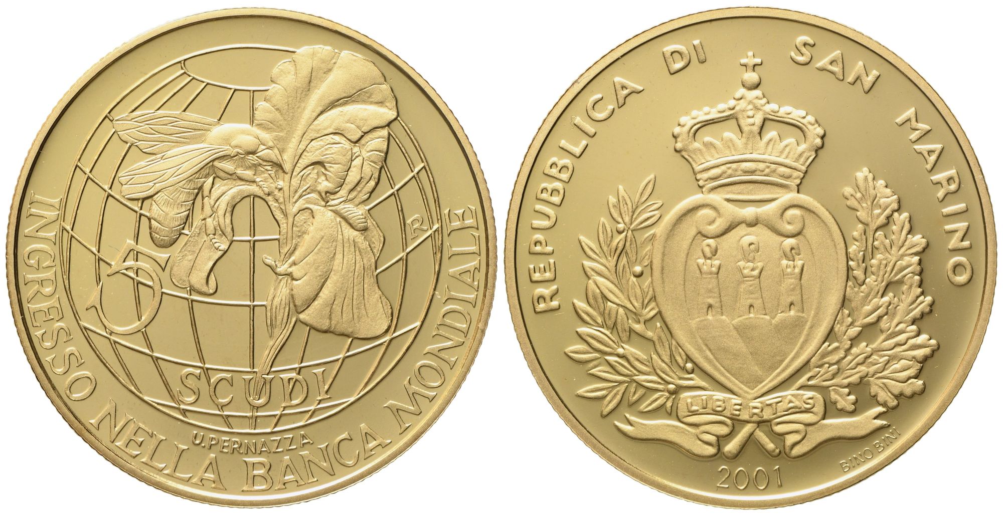 SAN MARINO. 5 scudi 2001. Au 916,66 (16,96 g)