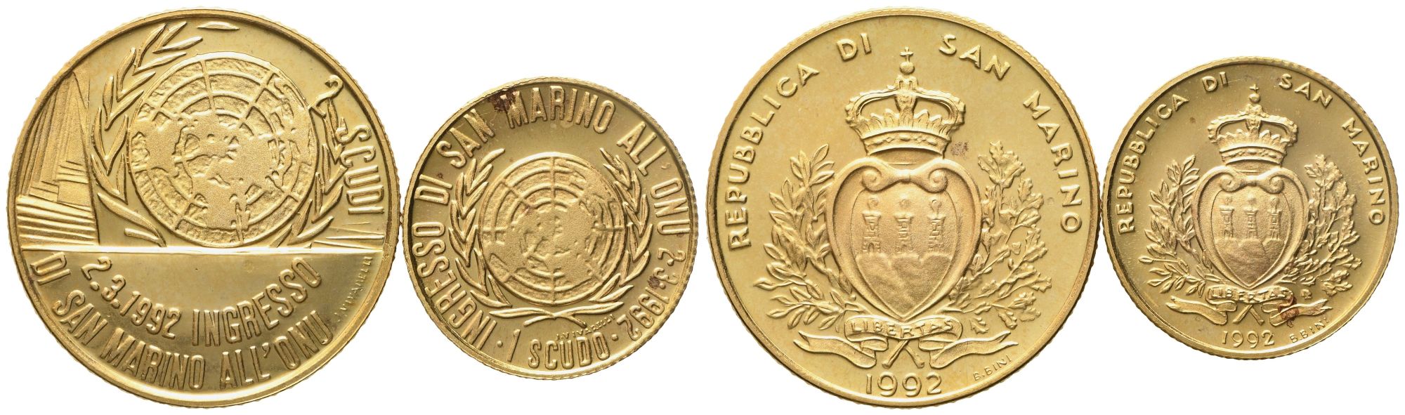 SAN MARINO. 1 e 2 scudi 1992, dittico. Au 900 (9,67 g)