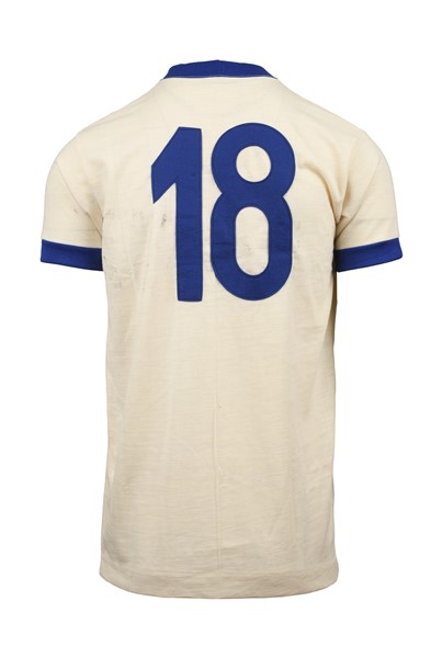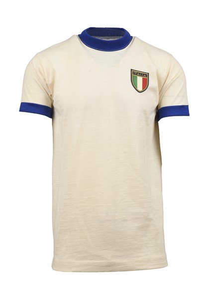 Squadra Nazionale Italiana. Maglia Nr.18 preparata per la gara amichevole contro la Jugoslavia il 13 giugno 1979 allo Stadio Maksimir di Zagabria. Vittoria degli jugoslavi per 4-1 con una tripletta di Safet Susic, Paolo Rossi segnò la rete per l'Italia. Il numero 18 non faceva parte dei giocatori che parteciparono alla gara. Maglia preparata per l'incontro. Italy National Team jersey No.18 issued for friendly match vs Jugoslavia on 13th june 1979 in Maksimir Stadium of Zagreb. Victory for the Jugoslavs 4-1 with a Safet Susic hat-trick, Paolo Rossi scored for Italy. Number 18 was not among the players who took part in the match. Match issued shirt.