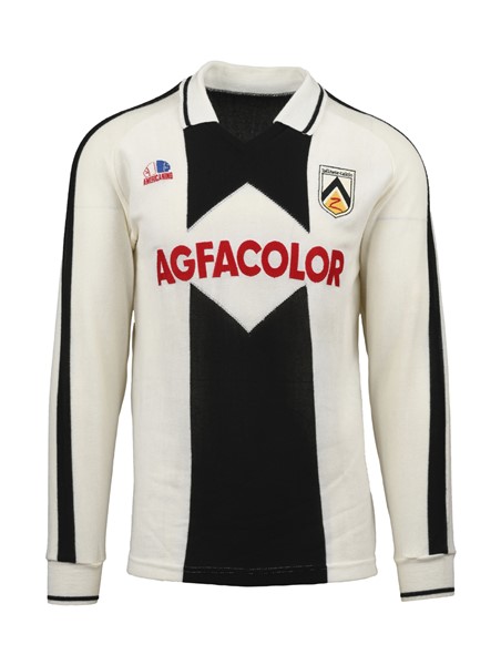 ZICO. Maglia Nr.10 Udinese Calcio indossata durante la stagione 1983-1984 del Campionato Italiano di Serie A. Incontro da determinare. Il giocatore segnò 19 reti in 24 partite. Partecipa a 3 Coppe del Mondo. Marca Americanino. Maglia indossata. Udinese Calcio jersey No.10, worn during Italian Serie A Championship, season 1983-1984. Match to be defined. Player scored 19 goals in 24 matches. Participates in three world cups. Americanino brand. Match worn shirt.