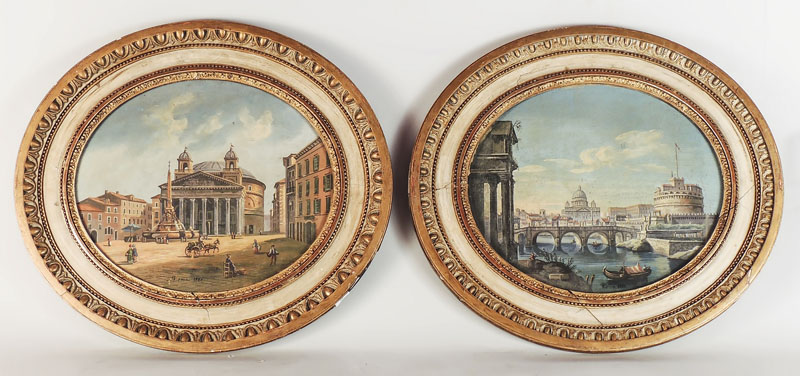 VEDUTE DI ROMA - ROME VIEWS coppia di gouaches su carta in ovale - a pair of...