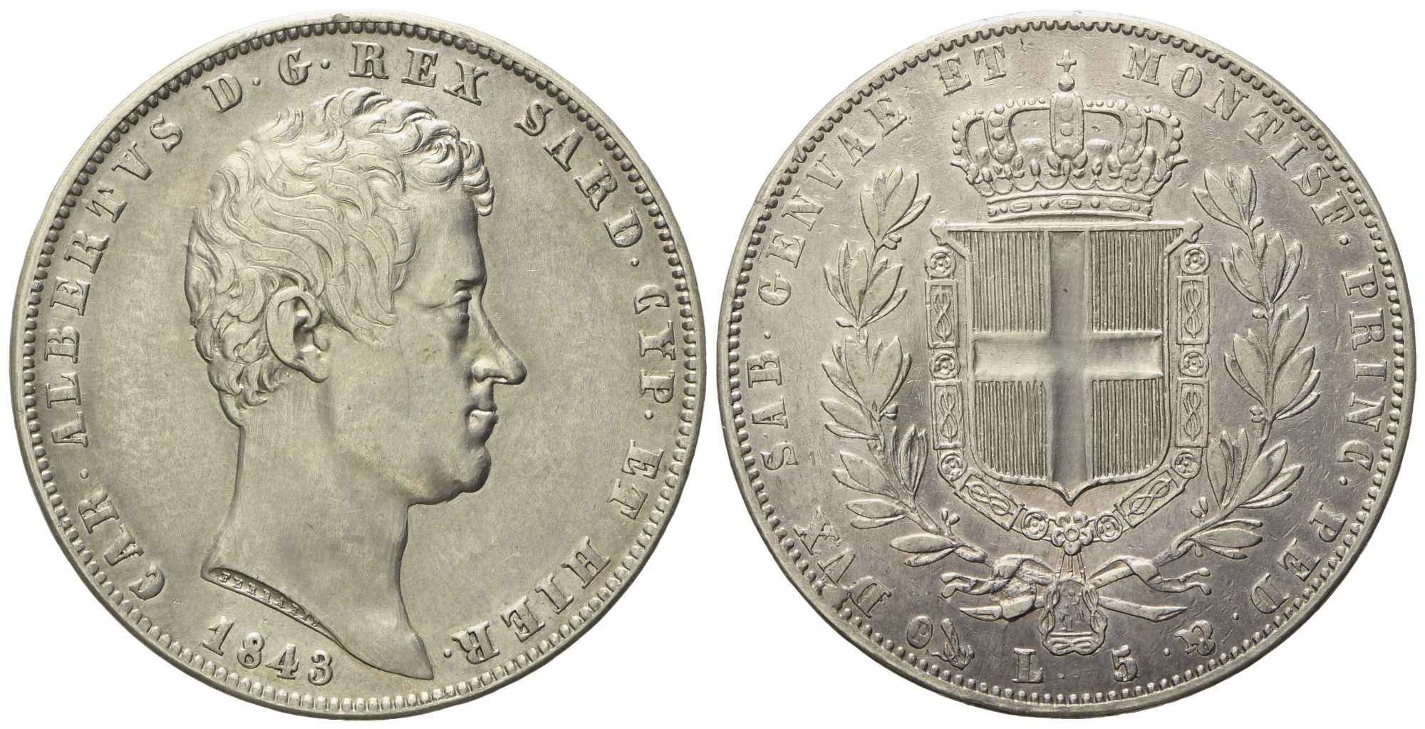 REGNO DI SARDEGNA. Genova. Carlo Alberto (1831 - 1849). 5 Lire 1843. Ag (24,77 g; 37,1 mm)