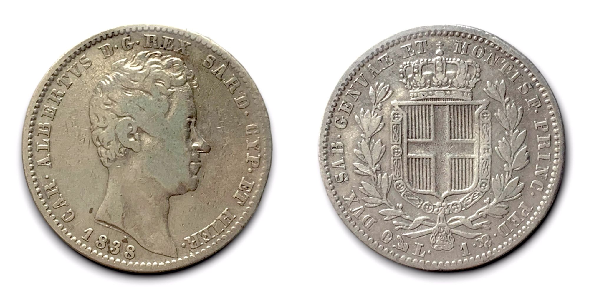 REGNO DI SARDEGNA. Genova. Carlo Alberto (1831-1849). 1 lira 1838. Ag