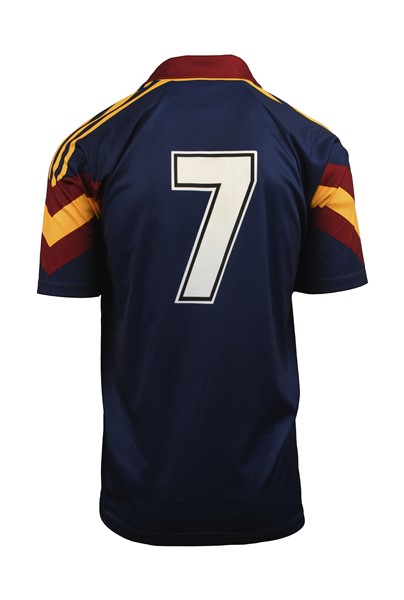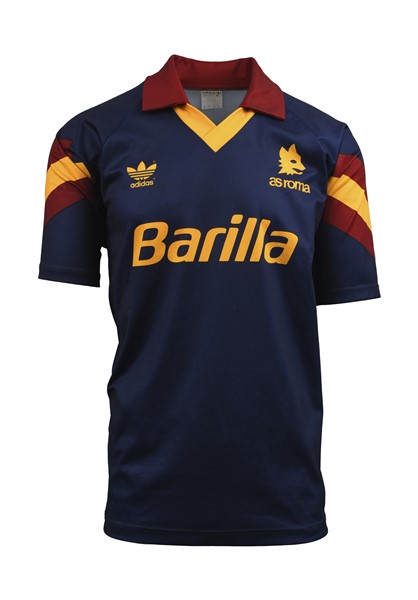 Thomas HÄSSLER. Maglia Nr.7 AS Roma indossata durante 1\4 di finale, gara di andata, Coppa delle Coppe contro l'AS Monaco il 4 marzo 1992. Il giocatore nell'incontro disputò tutti i 90 minuti. Incontro terminato 0-0. Marca Adidas. Fabbricata in Italia. Taglia XL. Maglia indossata durante l'incontro. AS Roma jersey No.7 worn during the quarter-final first leg of the Cup Winners' Cup against AS Monaco on March 4, 1992. The player played 90 minutes. 0-0 draw. Adidas brand. Made in Italy. Size XL. Match worn shirt.