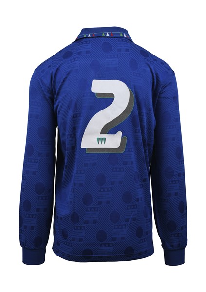 Antonio BENARRIVO. Maglia Nr.2 Squadra Nazionale Italiana preparata per l'incontro amichevole contro la Francia il 16 febbraio 1994 a Napoli. Vittoria per 1-0 dei francesi con un gol di Youri Djorkaeff. Il giocatore del Parma era titolare in questo incontro. Marca Diadora. Taglia L. Prodotta in Italia. Maglia preparata. Italy National Team jersey No.2, issued for friendly match vs France on 16th February 1994 in Naples. 1-0 victory for the French on a goal by Youri Djorkaeff. Parma's player was in the starting 11 Italian players of the match. Brand Diadora. Size L. Made in Italy. Match issued shirt.