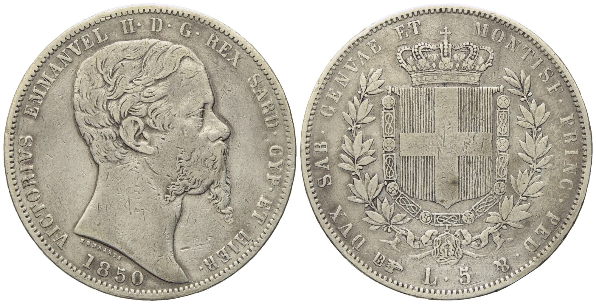 REGNO DI SARDEGNA. Torino. Vittorio Emanuele II (1849-1861). 5 Lire 1850. Ag (24,94 g; 37,40 mm)