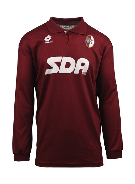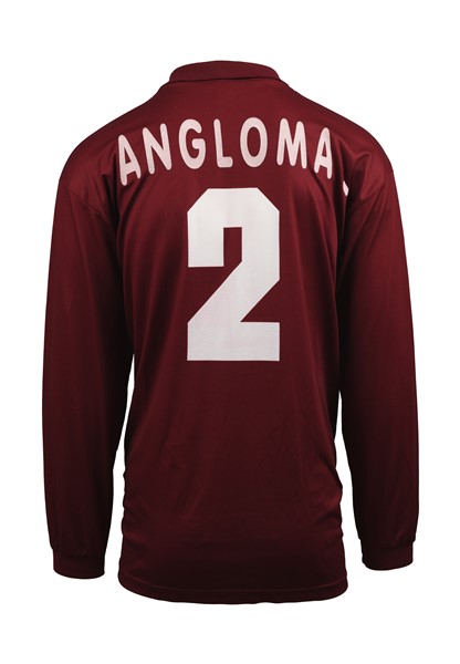 Jocelyn ANGLOMA. Maglia Nr.2 Torino Calcio indossata in gara durante il Campionato Italiano di Serie A 1995/1996. Il giocatore ha disputato 31 gare del Campionato. Partita da determinare. Marca Lotto. Fabbricata in Italia. Taglia XL. Maglia indossata in gara. Torino Calcio No.2 jersey worn during the 1995-1996 season of the Italian Serie A Championship. The player took part in 31 matches. Match to be determined. Lotto brand. Made in Italy. Size XL. Match worn shirt.