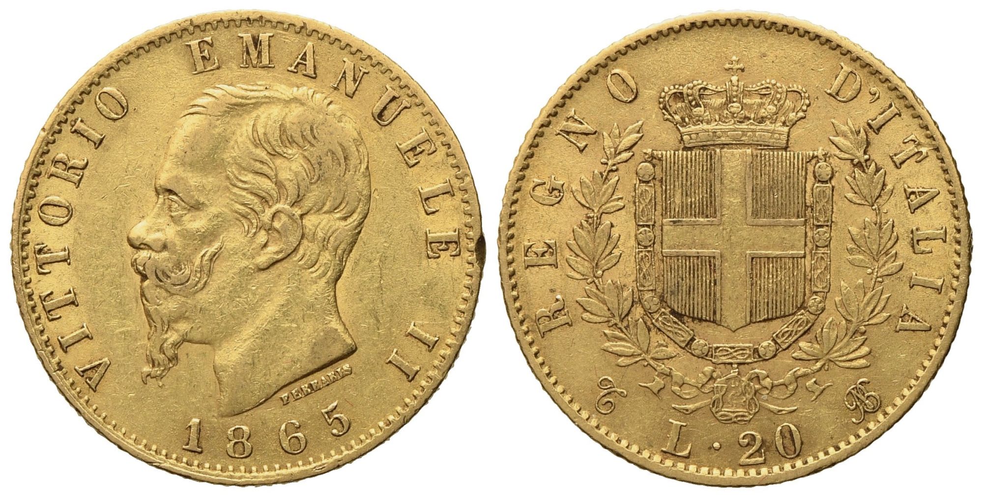 REGNO D'ITALIA. Torino. Vittorio Emanuele II (1861 - 1878). 20 lire 1865. Au (6,45 g; 20,8 mm)