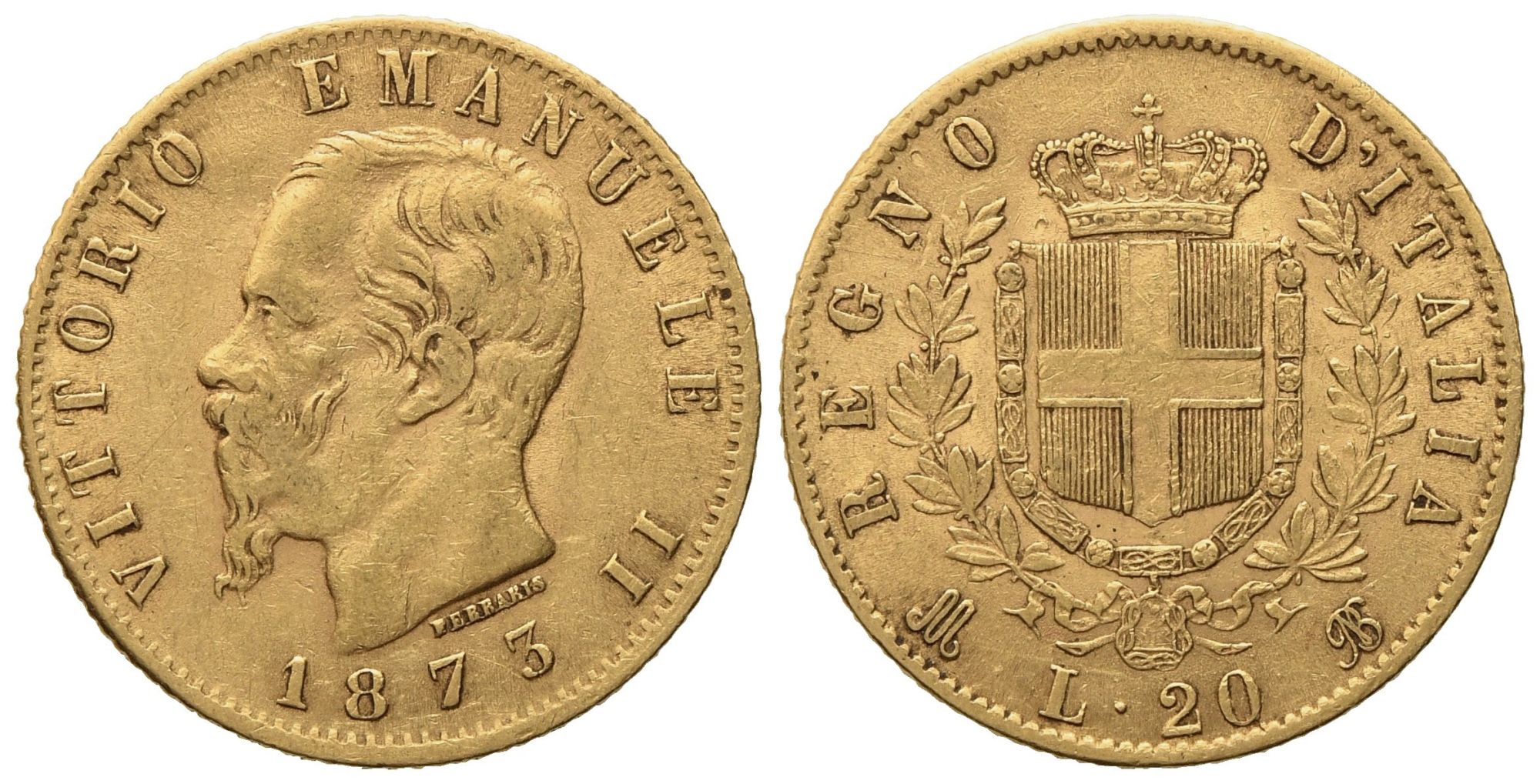 REGNO D'ITALIA. Milano. Vittorio Emanuele II (1861 - 1878). 20 lire 1873. AU (6,45 g; 21 mm)