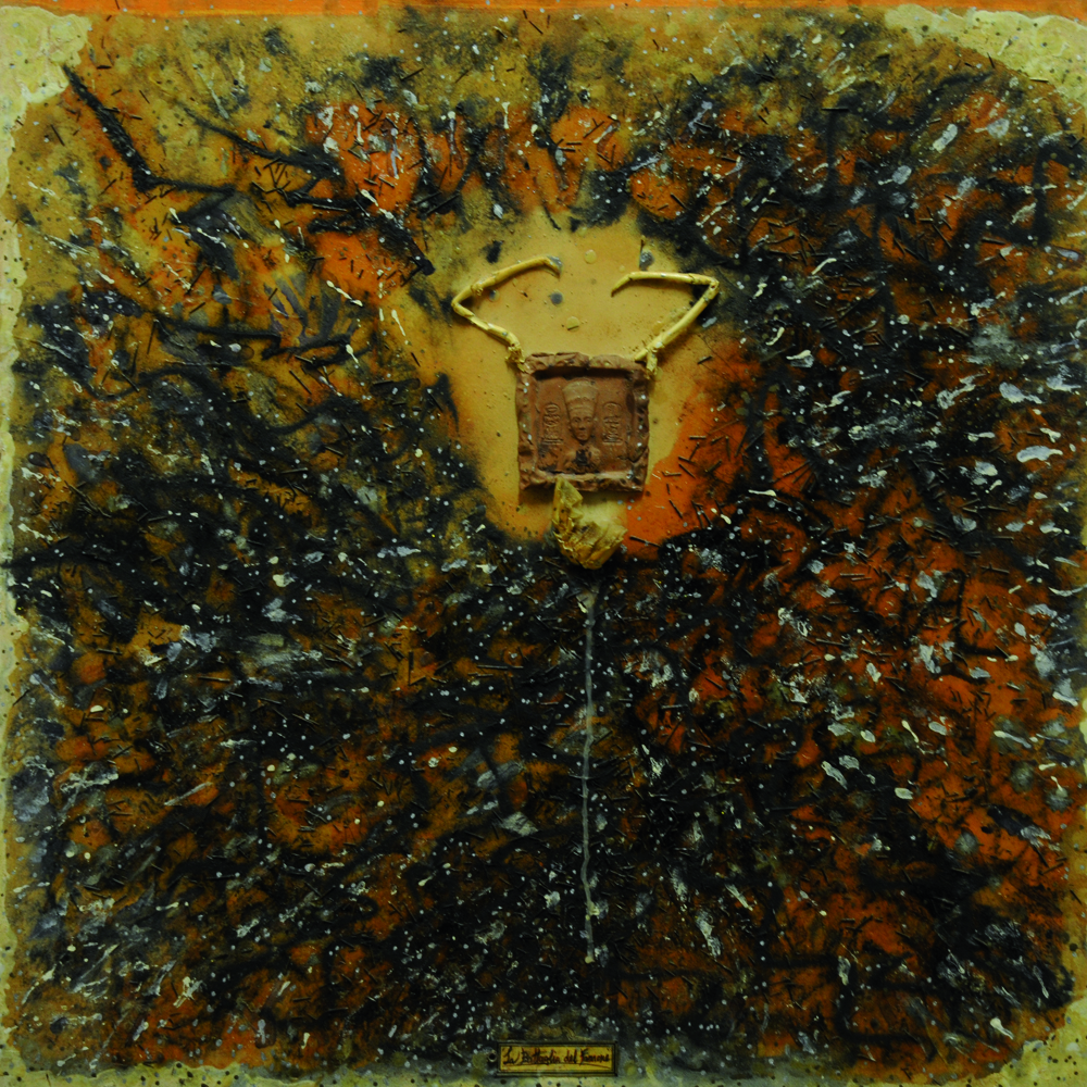 CLAUDIO COSTA (1942 – 1995) - " La battaglia del faraone ", 1984, Ferro, ceramica e acrilico su tavola, cm. 80 x 80. Firmato e datato sul retro. Autentica Archivio Costa su fotografia. Prov. Collezione Privata