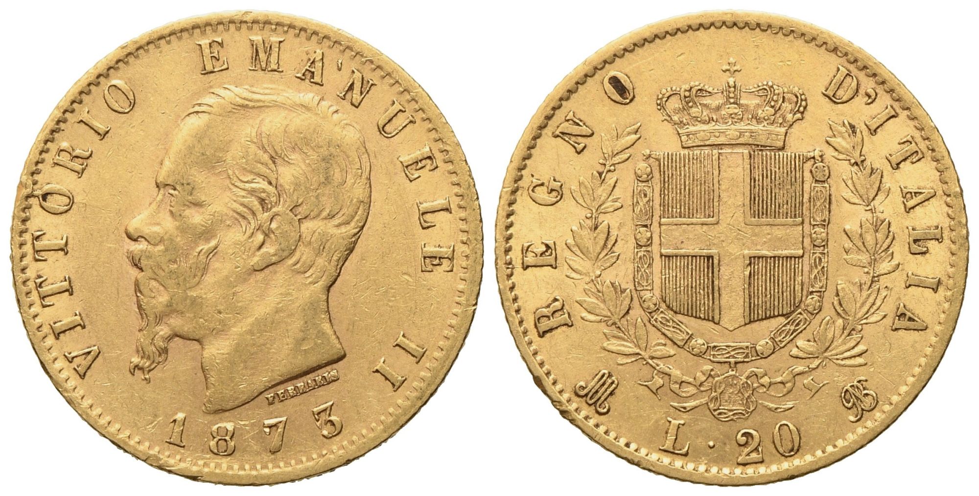 Lotto 665 | REGNO D'ITALIA. Milano. Vittorio Emanuele II (1861 - 1878). 20 lire 1873. Au (6,45 g; 21 mm)