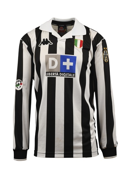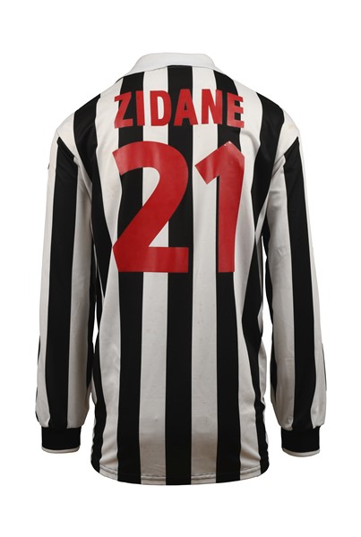 Zinedine ZIDANE. Maglia Nr.21 Juventus FC indossata durante la stagione 1998/1999 del Campionato Italiano di Serie A. Il giocatore partecipa a 25 incontri con la Juventus. Zidane vince la Supercoppa Uefa e la Coppa Intercontinentale nel 1996, due campionati italiani nel 1997 e nel 1998, una Supercoppa Italiana nel 1997 ed una Coppa Intertoto nel 1999. Un incredibile palmares con il suo club per il Campione del Mondo 1998 e Campione d'Europa del 2000 con la nazionale francese. Marca Kappa. Modello Gara.Taglia XL. Maglia indossata durante un incontro. Jersey No.21 Juventus FC worn during the 1998/1999 season of the Italian Serie A Championship. The player participates in 25 matches with Juventus. Zidane wins the UEFA SuperCup and the Intercontinental Cup in 1996, two Italian championships, in 1997 and in 1998, an Italian Super Cup in 1997 and an Intertoto Cup in 1999. An incredible palmares with his club for the World champion 1998 and European Champion 2000 with French national team. Kappa brand. Match model. Size XL. Match worn shirt.