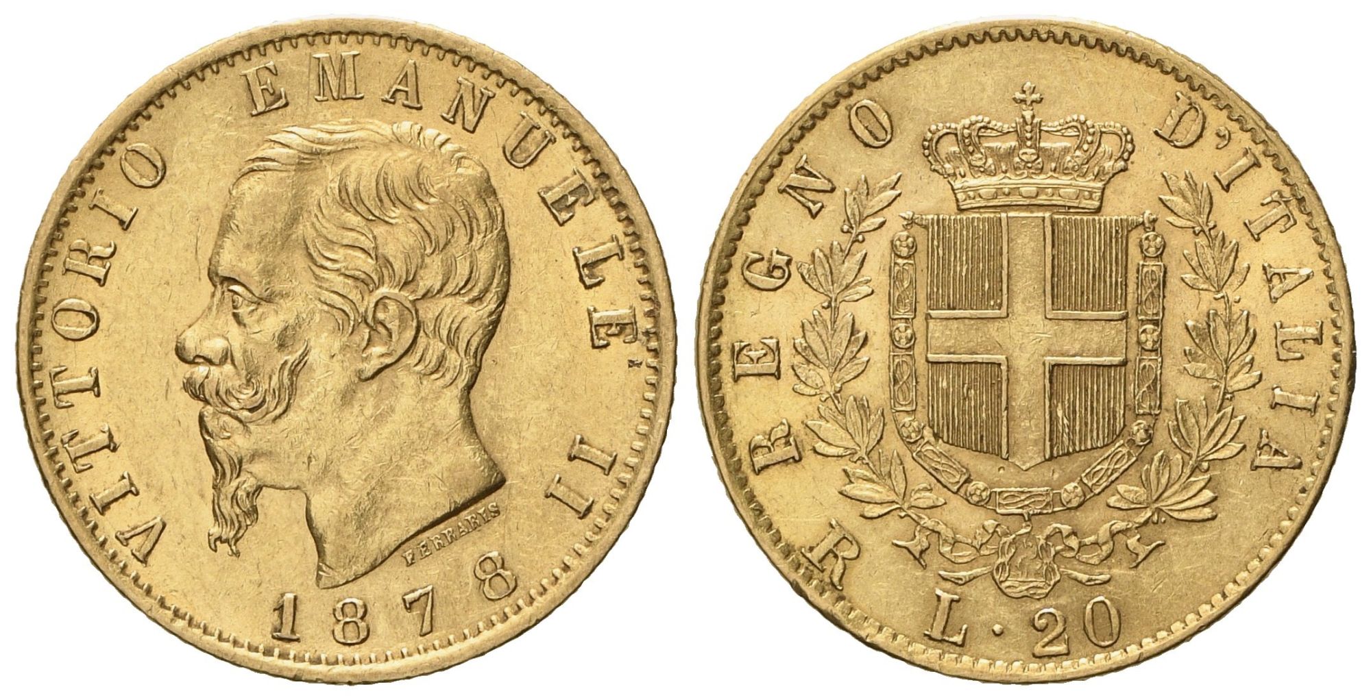 REGNO D'ITALIA. Roma. Vittorio Emanuele II (1861 - 1878). 20 lire 1878. Au (6,48 g; 21 mm).