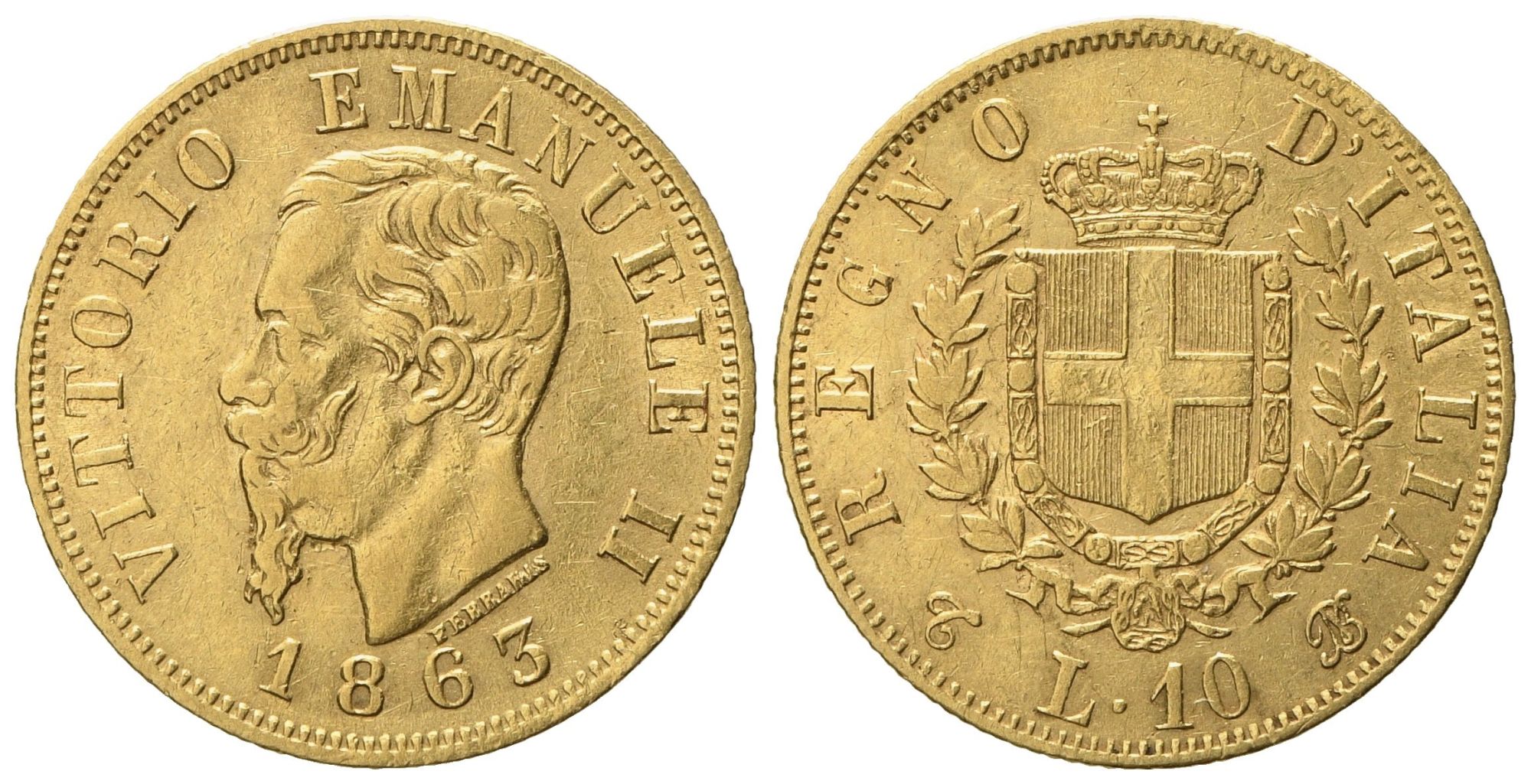 REGNO D'ITALIA. Torino. Vittorio Emanuele II (1861 - 1878). 10 lire 1863. Au (3,21 g; 18,3 mm).