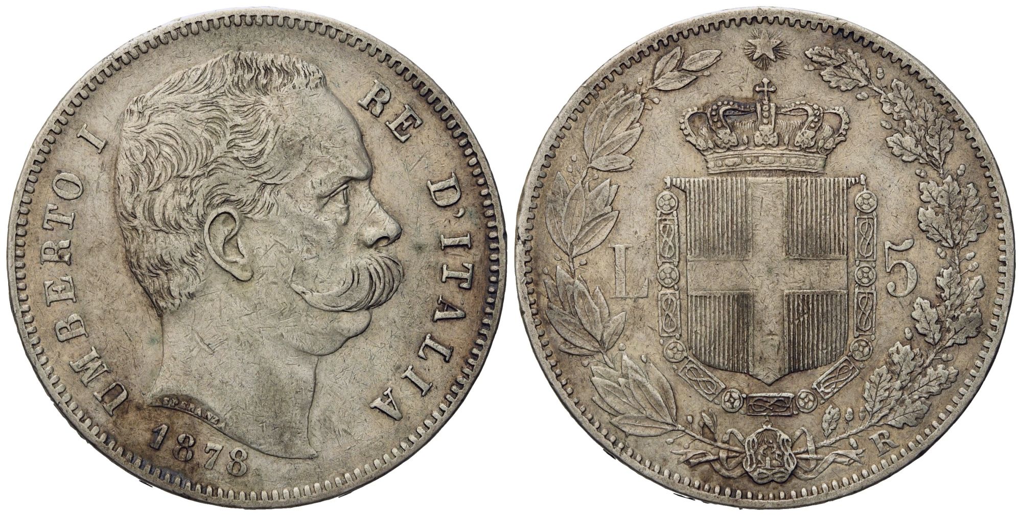 Lotto 687 | REGNO D'ITALIA. Umberto I (1878-1900). 5 Lire 1878. Ag (25 g; 36,8 mm)