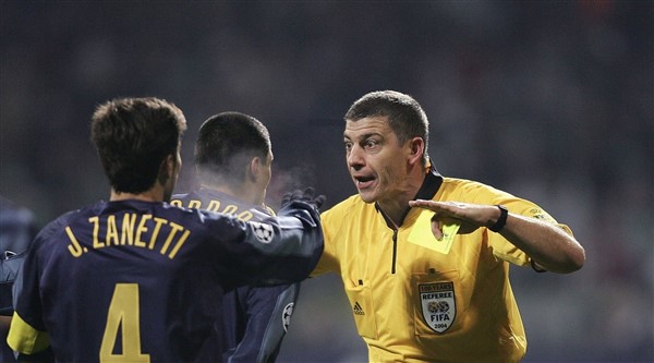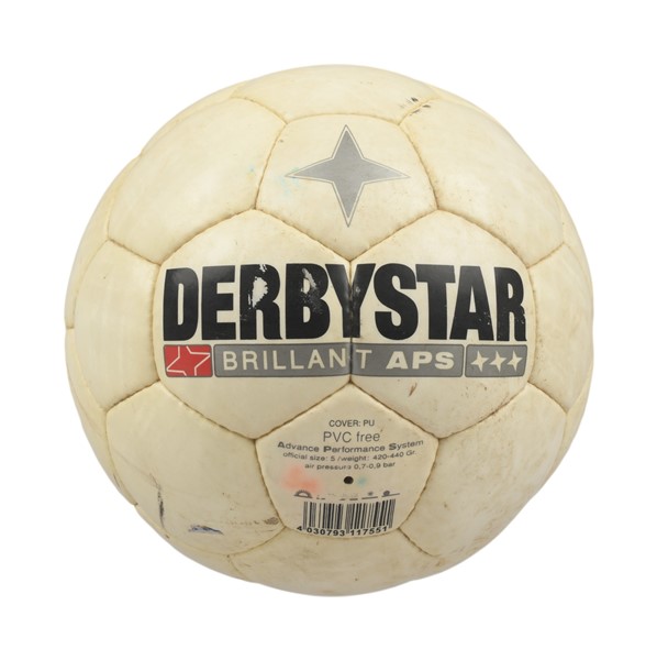 Werder Brema - FC Internazionale. Pallone ufficiale utilizzato durante la Champions League 2004/2005, gara del gruppo G, disputata il 24 novembre 2004 al Weeserstadion di Brema. Incontro finito in pareggio con il risultato di 1-1 con un gol di Valérien Ismael per il Werder Brema e di Obafemi Martins per l'Internazionale FC. Pallone Derbystar Brillant APS. Official ball used during the Group G match of the Champions League, November 24, 2004 at the Weeserstadion in Bremen. 1-1 draw with a goal from Valérien Ismaël for Werder and Obafemi Martins for Inter. APS Shiny Derbystar Ball.