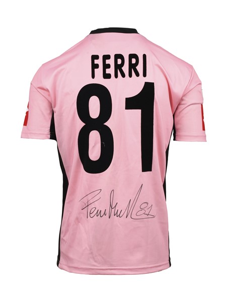 Michele FERRI. Maglia Nr.81 Palermo FC, preparata per la stagione 2004/2005 del Campionato Italiano di Serie A. Il giocatore disputò 7 gare. Autografo originale sul retro. Marca Lotto. Prodotta in Italia. Taglia XL. Maglia preparata da gara. Palermo FC shirt No.81, issued for Italian Championship Serie A season 2004/2005. Player participates in 7 games. Original autograph on back side. Lotto brand. Made in Italy. Size XL. Match issued shirt.