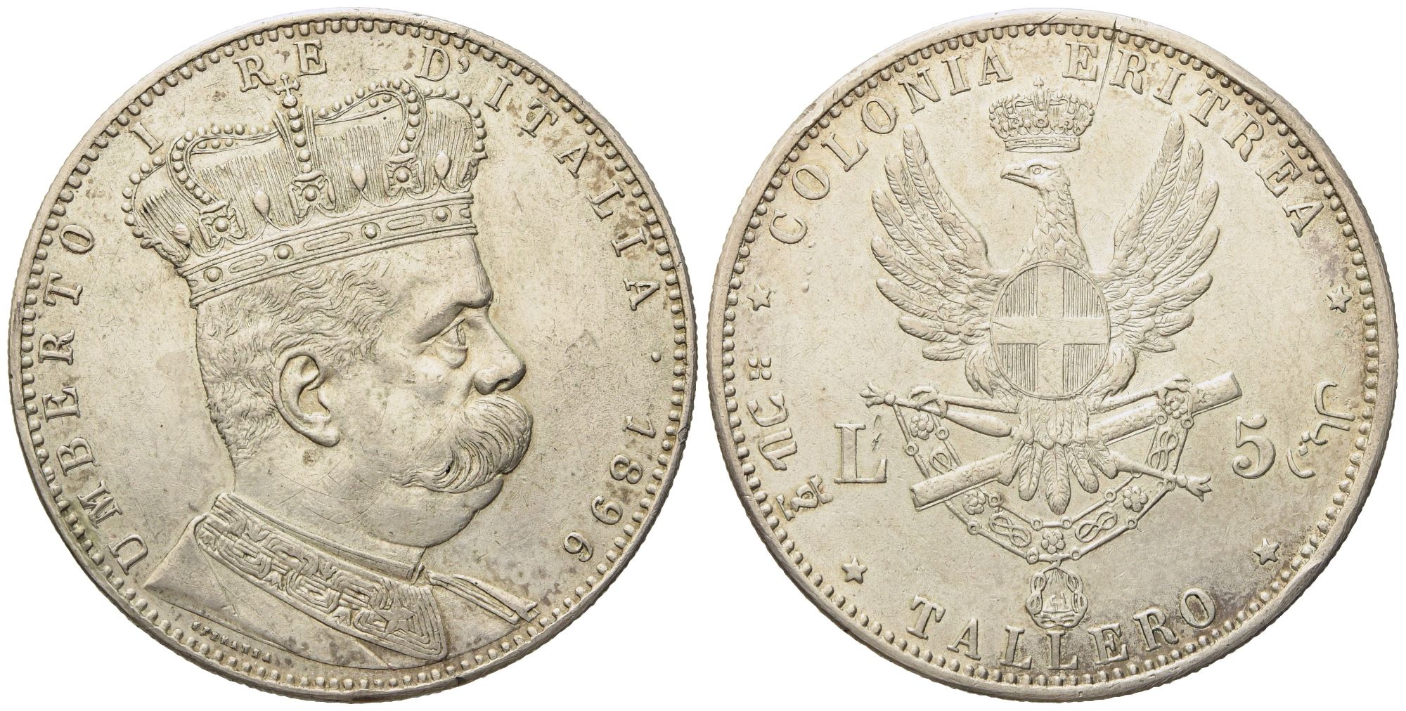 Lotto 696 | REGNO D'ITALIA. Colonia Eritrea. Umberto I (1890-1896). 5 Lire - Tallero 1896. Ag (27,94 g; 40,5 mm)