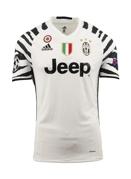 Sami KHEDIRA. Maglia Nr.6 FC Juventus preparata per la stagione 2016/2017 della Champions League. Il giocatore disputò 11 incontri. Partita da determinare. Marca Adidas. Modello Adizero. Prodotta in Thailandia. Taglia 8. Maglia preparata. Juventus Turin No.6 jersey prepared for the 2016-2017 Champions League season. The player participates in 11 matches. Match to be determined. Adidas brand. Adizero model. Made in Thailand. Size 8. Match issued shirt.