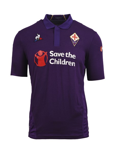 Bryan DABO. Maglia Nr.14 ACF Fiorentina preparata per la stagione 2018/2019 del Campionato Italiano di Serie A. Il giocatore disputò 23 incontri. Partita da determinare. Marca Le Coq Sportif. Prodotta in Marocco. Taglia M. Maglia preparata. ACF Fiorentina jersey No.14 prepared for the 2018-2019 season of the Italian Serie A Championship. The player participates in 23 matches. Match to be determined. Brand Le Coq Sportif. Made in Morocco. Size M. Match issued shirt.