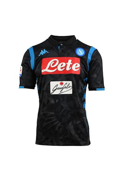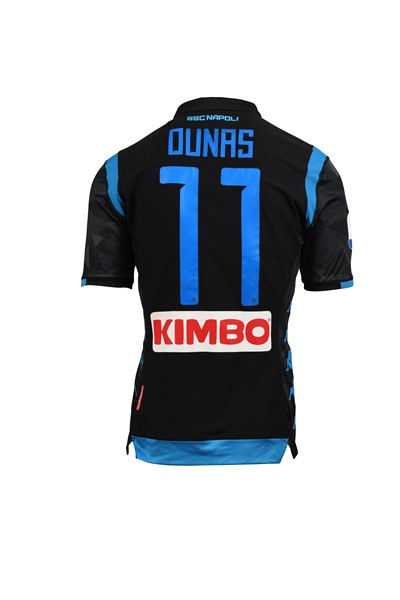 Adam OUNAS. Maglia Nr.11 SSC Napoli indossata durante la stagione 2018/2019 del Campionato Italiano di Serie A. Il giocatore disputò 18 incontri. Partita da determinare. Marca Kappa. Modello Kombat. Prodotta in Cina. Taglia XL. Maglia indossata e non lavata. SSC Napoli jersey No.11 worn during the 2018-2019 season of the Italian Serie A Championship. The player participated in 18 matches. Match to be determined. Kappa brand. Kombat model. Made in China. Size XL. Match worn shirt, unwashed.