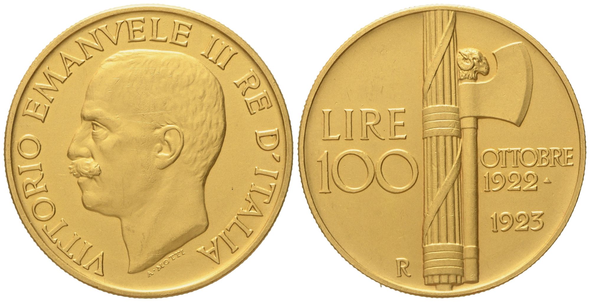 REGNO D'ITALIA. Vittorio Emanuele III (1900 - 1943). 100 lire 1923 "Fascio". Au (32,21 g; 34,9 mm)