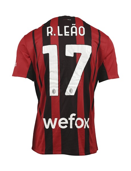 Rafael LEÃO. Maglia Nr.17 AC Milan preparata per la stagione 2021/2022 del Campionato Italiano di Serie A. Il giocatore disputò 34 incontri. Partita da determinare. Marca Puma. Modello Drycell. Prodotta in Indonesia. Taglia L. Maglia preparata. AC Milan jersey No.17 prepared for the 2021-2022 season of the Italian Serie A Championship. The player participates in 34 matches. Match to be determined. Puma brand. Drycell model. Made in Indonesia. Size L. Match issued shirt.