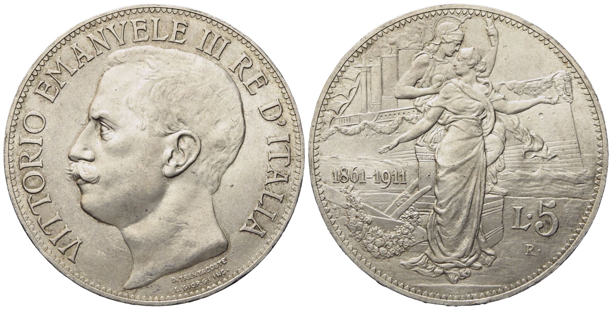 REGNO D'ITALIA. Vittorio Emanuele III (1900-1943). 5 Lire 1911 "Cinquantenario". Ag (24,98 g; 36,9 mm)