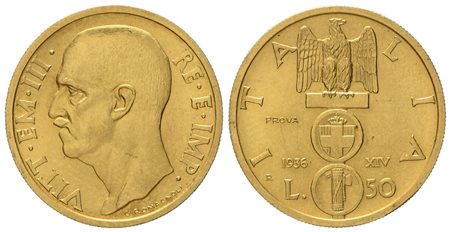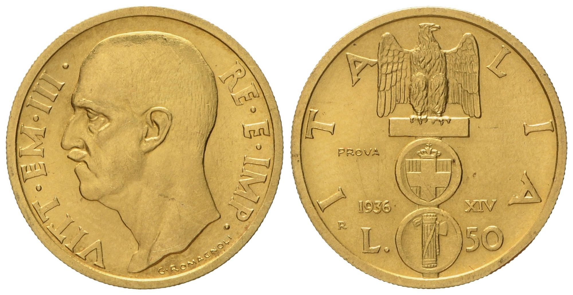 Lotto 721 | REGNO D'ITALIA. Vittorio Emanuele III (1900-1946). 50 Lire 1936 "Impero". PROVA. Au (4,41 g; 20,4 mm)