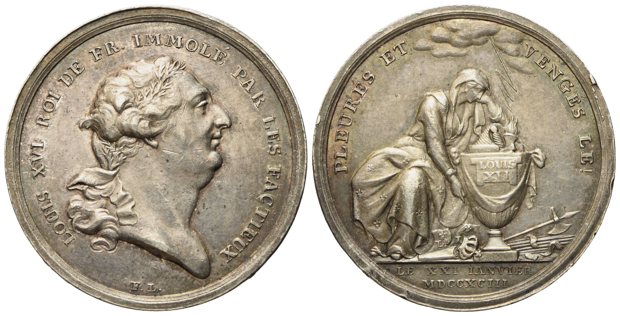 FRANCIA. Luigi XVI (1774 - 1792). Medaglia coniata a Berlino per commemorare la morte di Luigi XVI (21 gennaio 1793). Opus: Friedrich Loos. Ag (9,41 g; 30 mm)