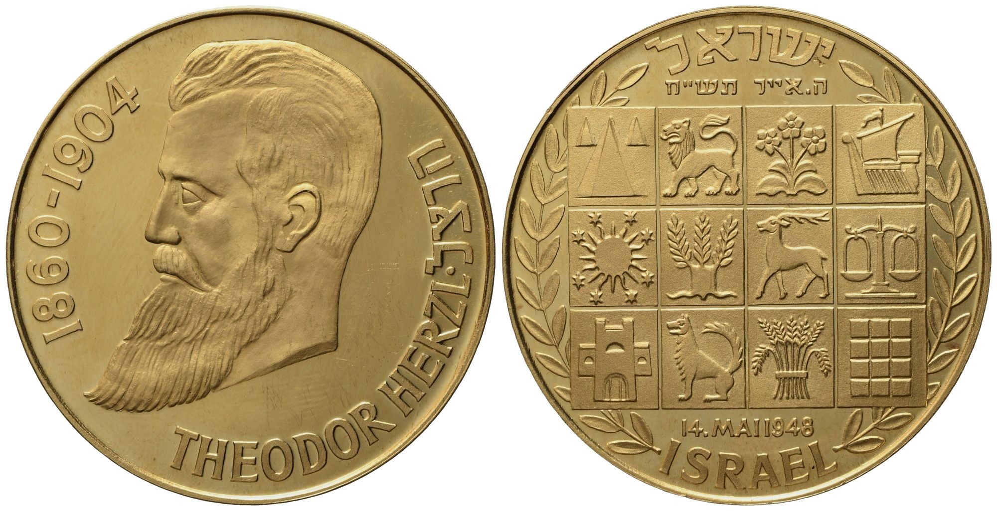 ISRAELE. Medaglia 1948, Theodor Herzl (1860-1904). Au (16,73 g; 36 mm)