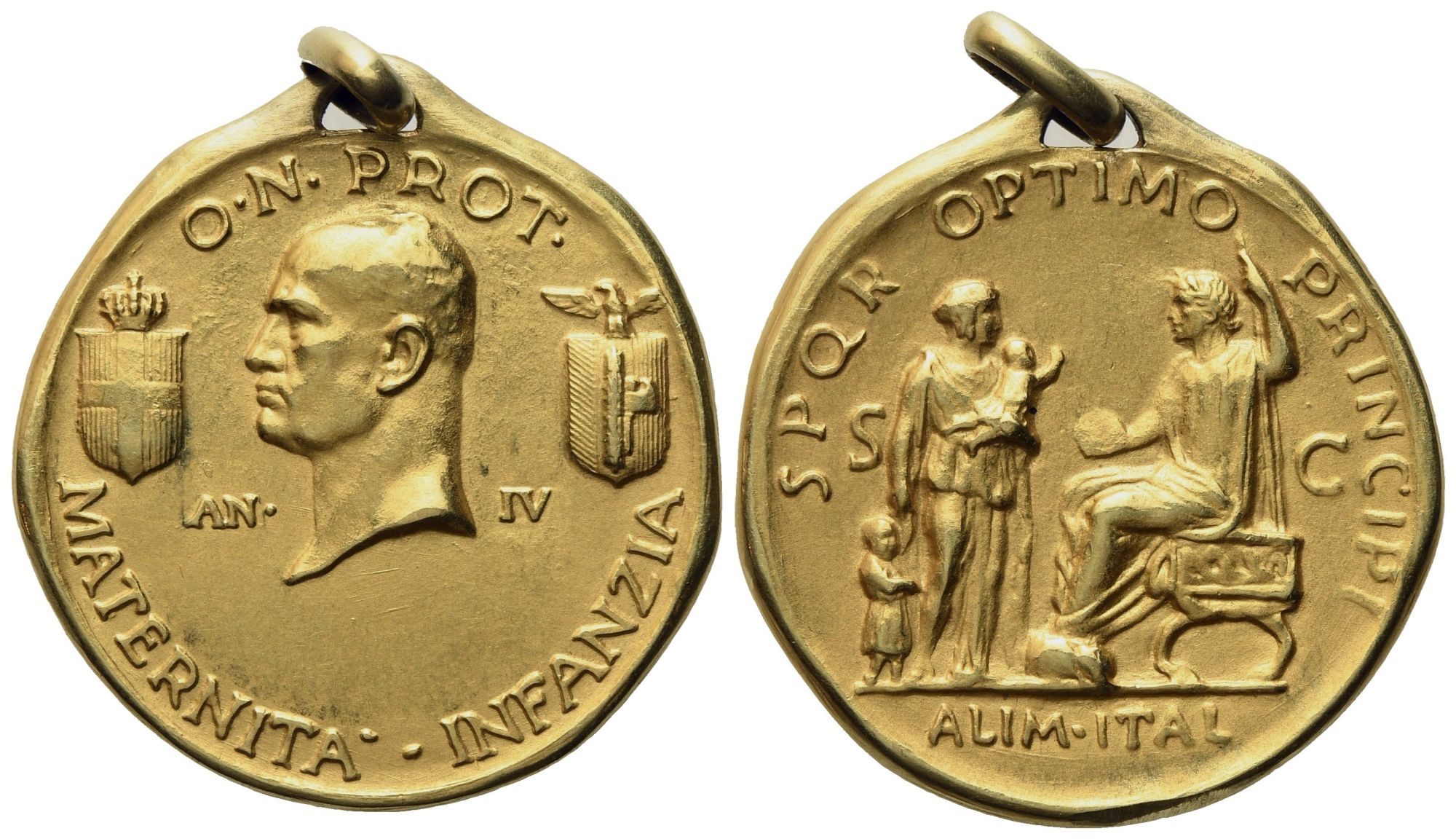 REGNO D'ITALIA. Vittorio Emanuele III (1900 - 1943). Medaglia per l'Opera Protezione Maternità e Infanzia. A. XV (1937). Au (12,36 g; 28 mm)